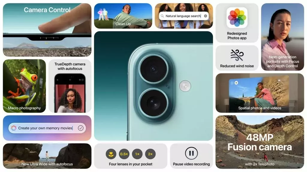 Универсальная новая система камер iPhone 16 делает прекрасные фотографии — как с близкого, так и с дальнего расстояния. Камера Fusion 48 Мп «два в одном» позволяет делать потрясающие снимки сверхвысокого разрешения или увеличивать масштаб с помощью 2-кратного оптического телеобъектива. Сверхширокоугольная камера снимает макроснимки с экстремально крупным планом. В целом это похоже на то, как если бы у вас в кармане было четыре объектива. А с помощью пространственной съемки вы даже можете снимать фотографии и видео в 3D, которые можно просматривать с помощью Apple Vision Pro.
